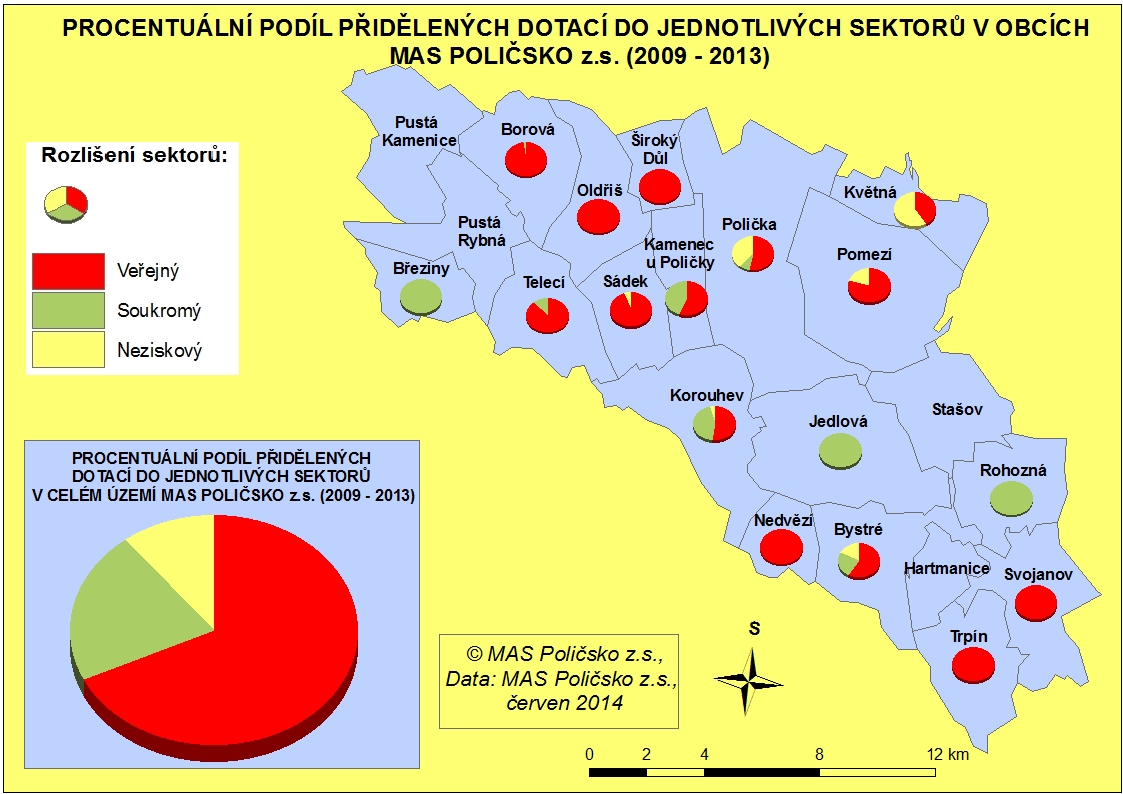 Podíl přidělených dotací do obcí MAS